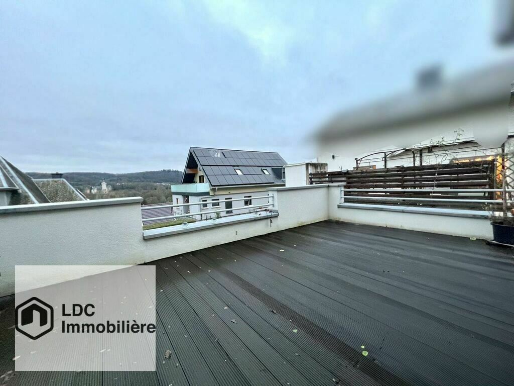 Cet appartement se distingue par son vaste séjour lumineux avec accès direct à la terrasse, offrant une agréable vue sur le château grand-ducal.